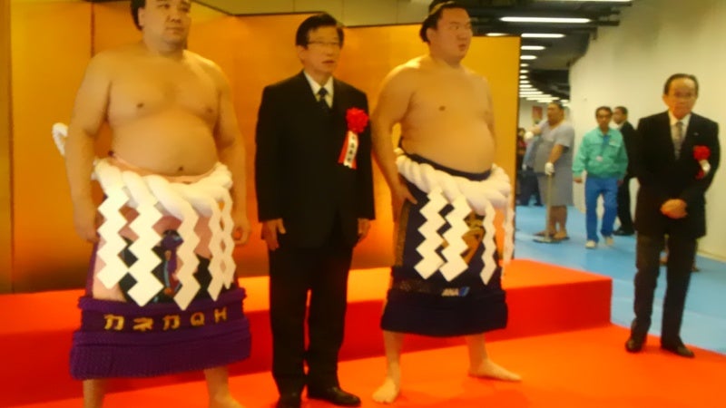 すばらしいこのはなアリーナでこけら落としの大相撲を楽しみました。広い会場が大入り満員御礼が出ていました。白鵬も日馬富士も大きい!!